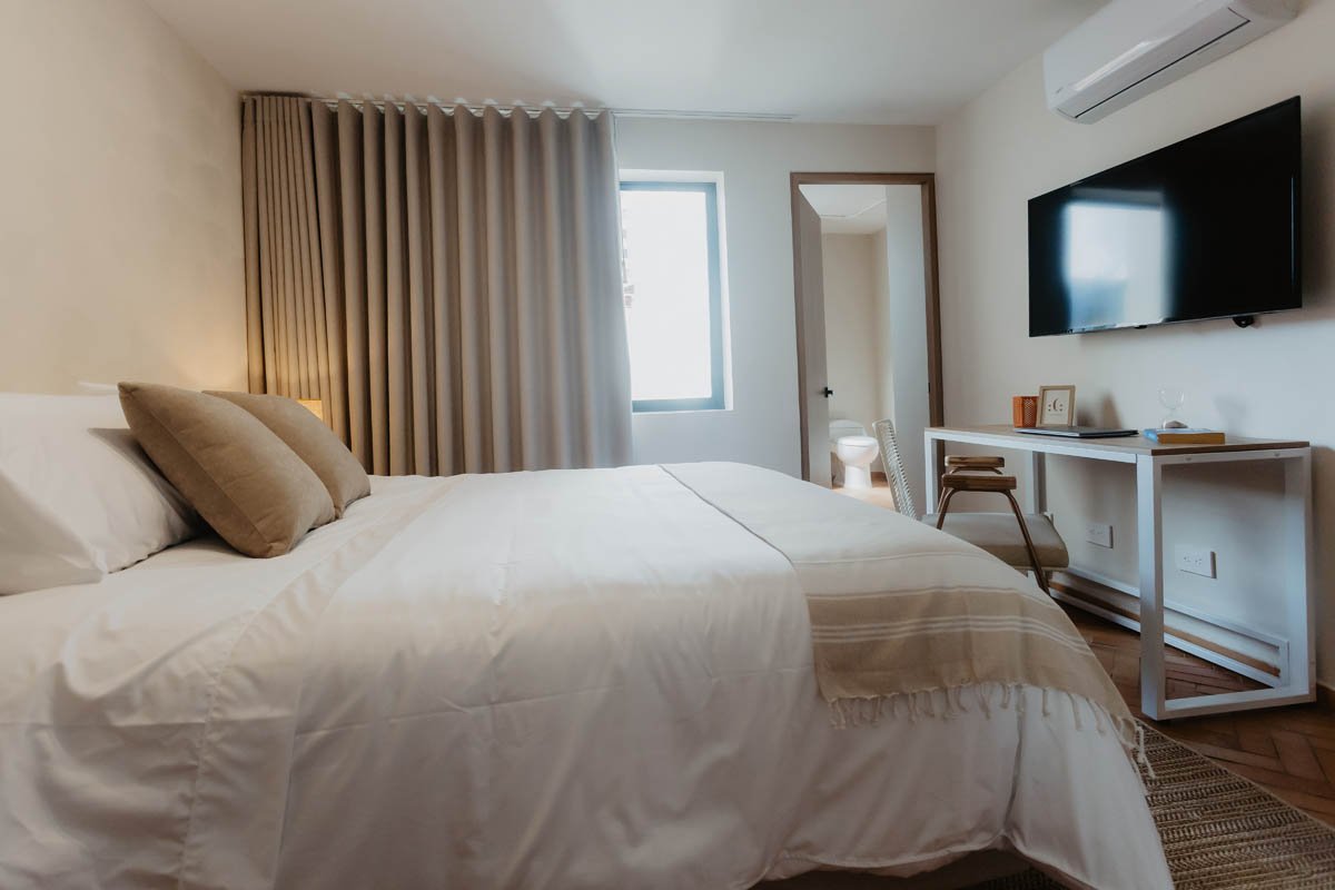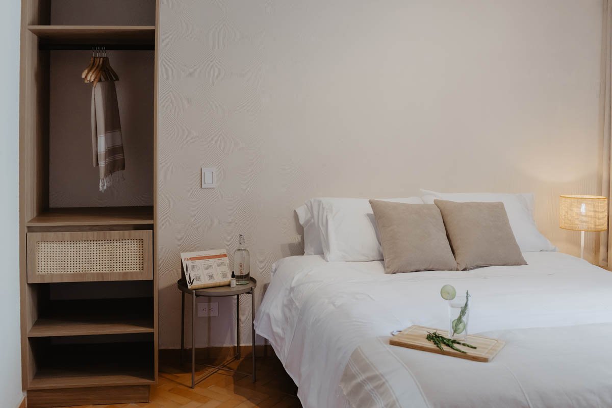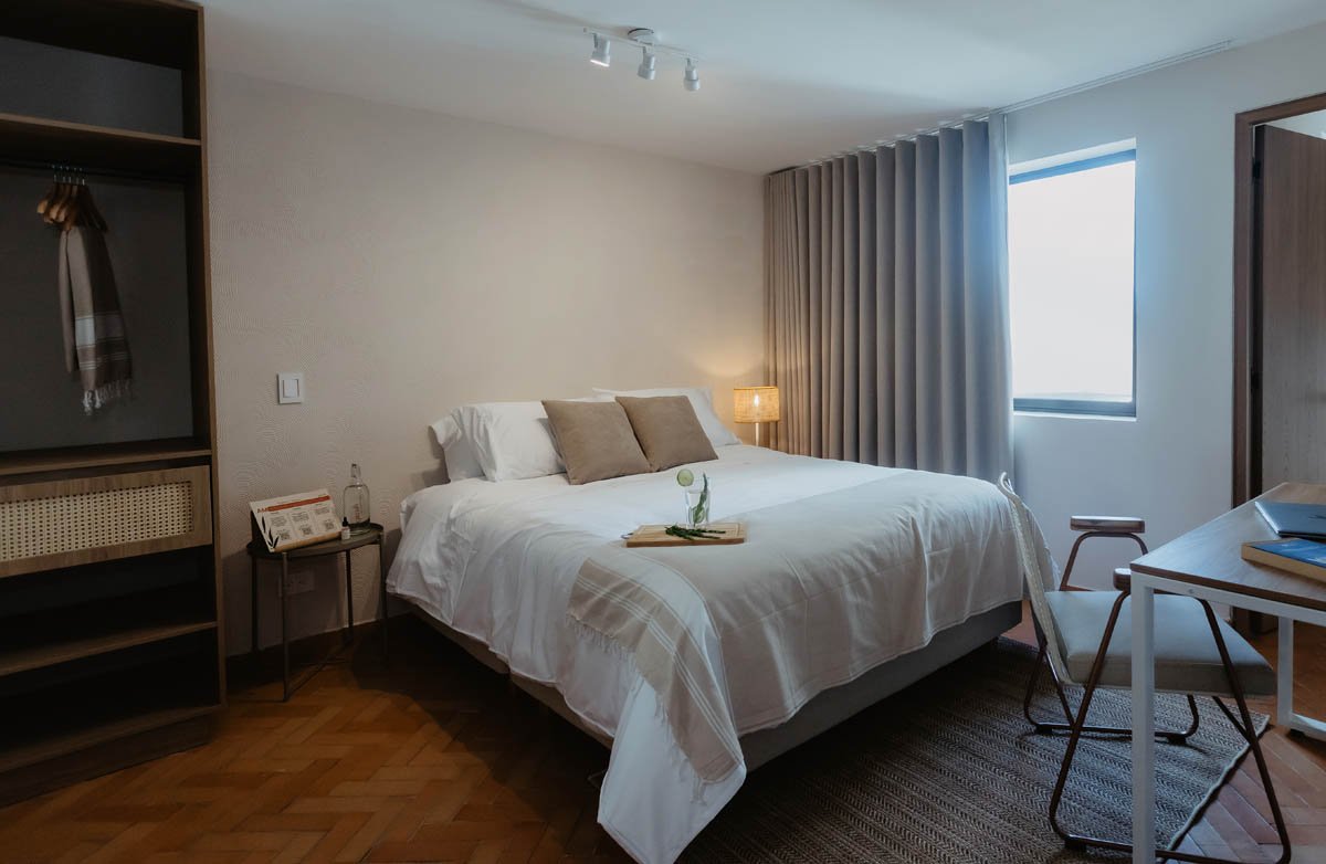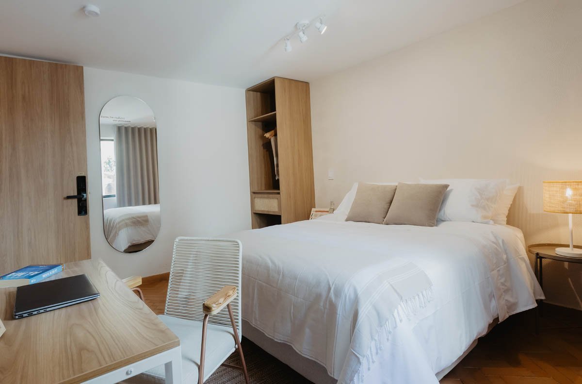 A warm, calming room with soft natural light — ideal for remote workers and wellness travelers.